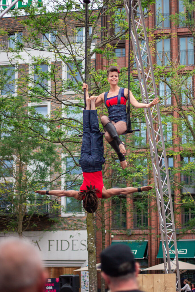 Strapaten De Strapaten act is een klassieke spectaculaire circusdiscipline in een modern jasje. Een droom van een acrobatische dansvlucht op grote hoogte in een kunstzinnige choreografie in de linten (strapaten).